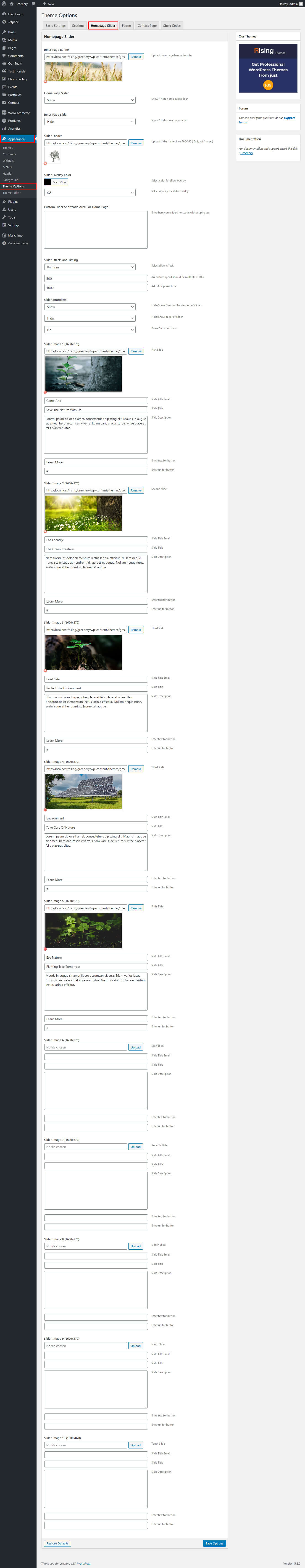In order to add slides to homepage slider go to the Appearance » Theme Options » Homepage Slider