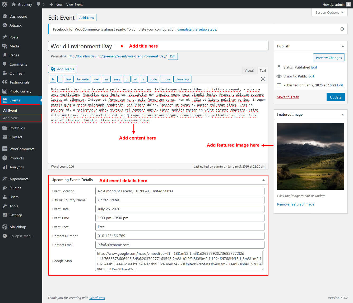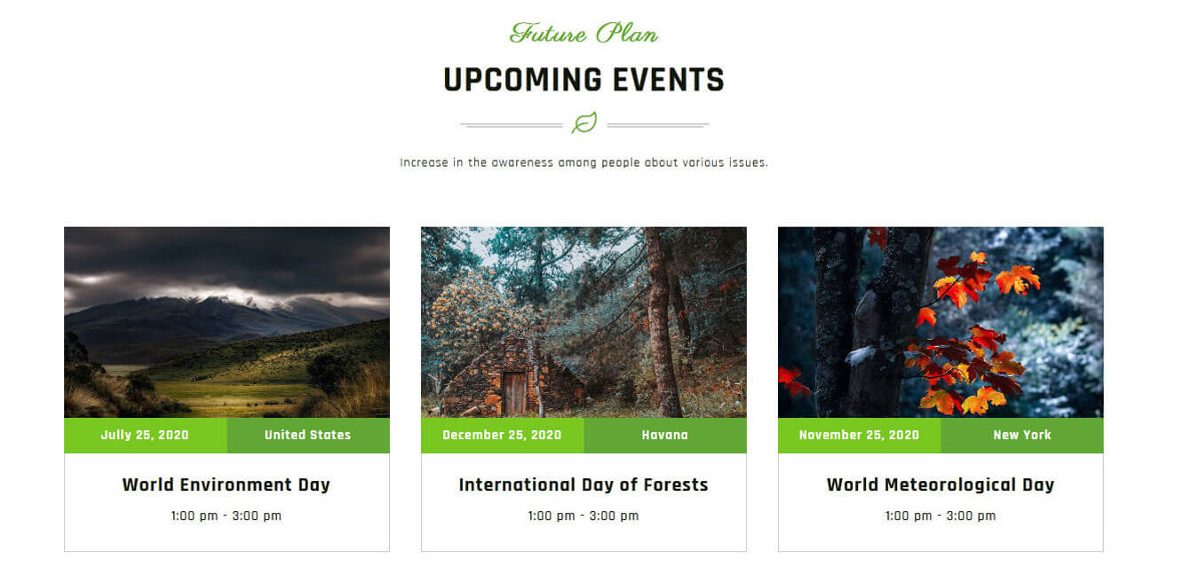 This section is used to display upcoming events in your website