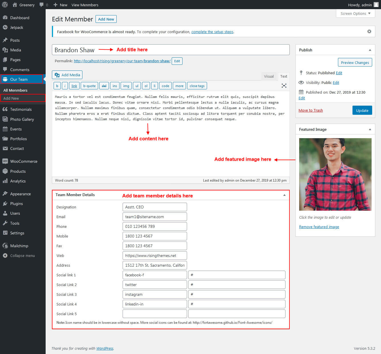 This section is used to display Team members list in your website