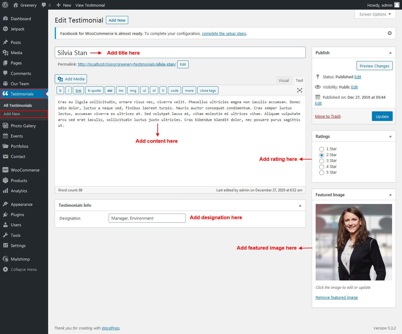 This section is used to display testimonials in your website