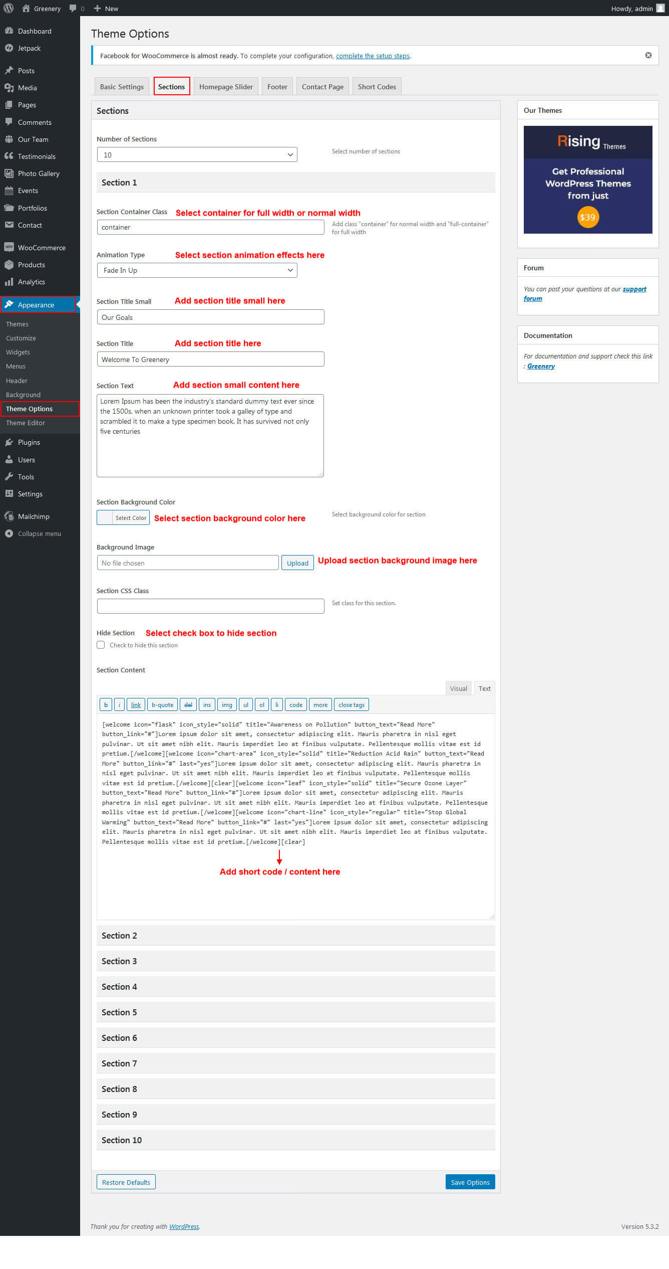 To view portfolio shortcodes go to Portfolio Page: