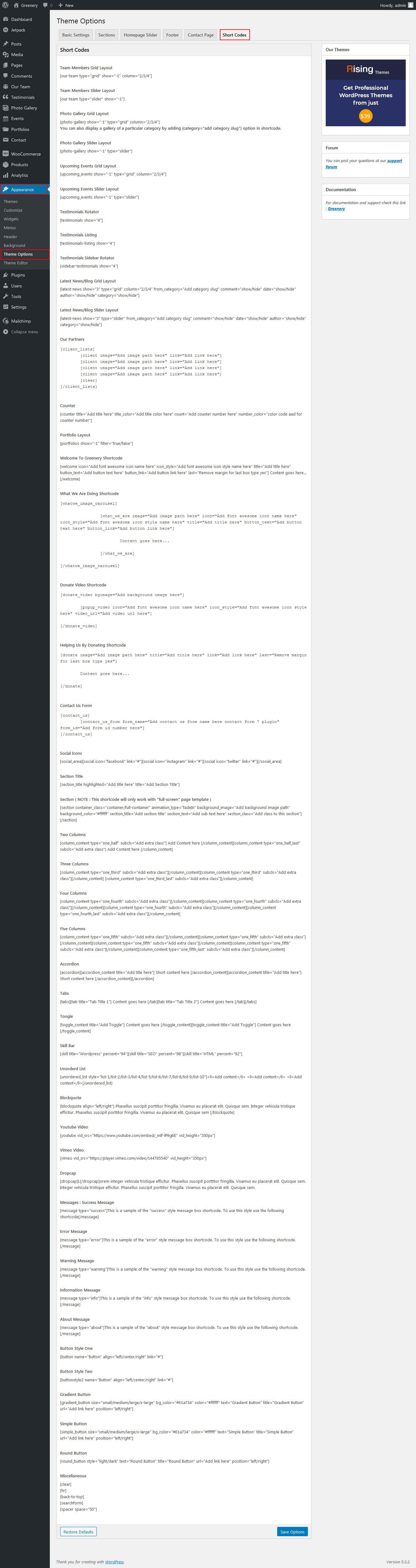 To view all shortcodes go to Appearance » Theme Options » Short Codes:
