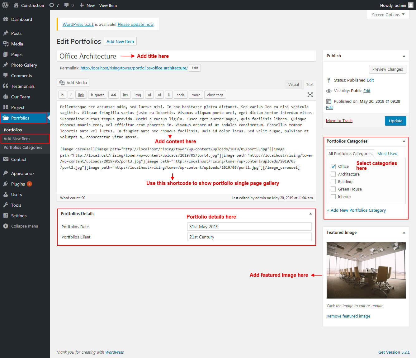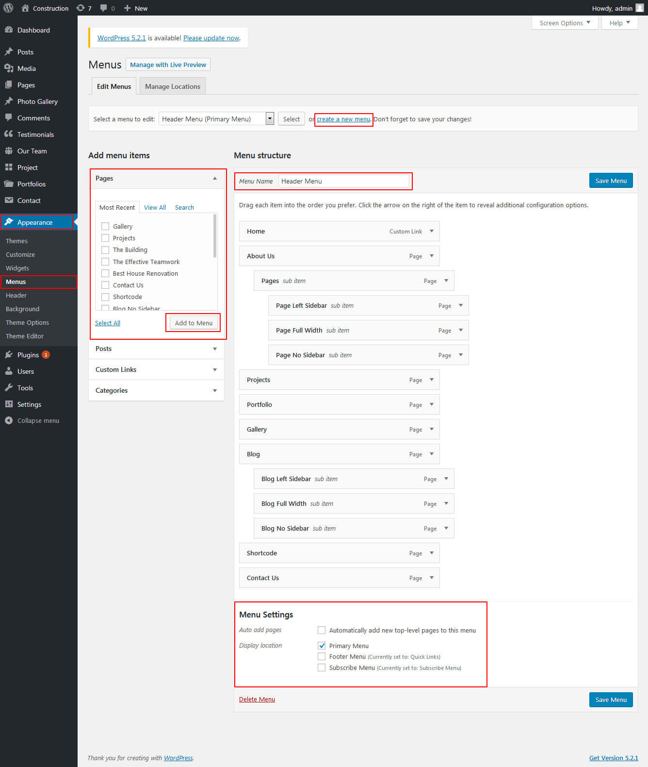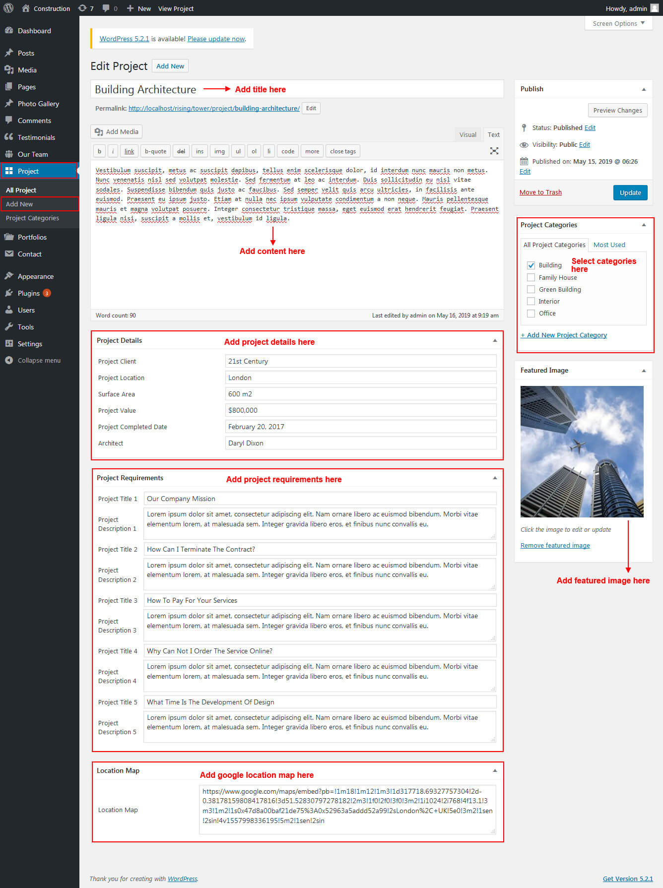 This section is used to display Recent Project list in your website