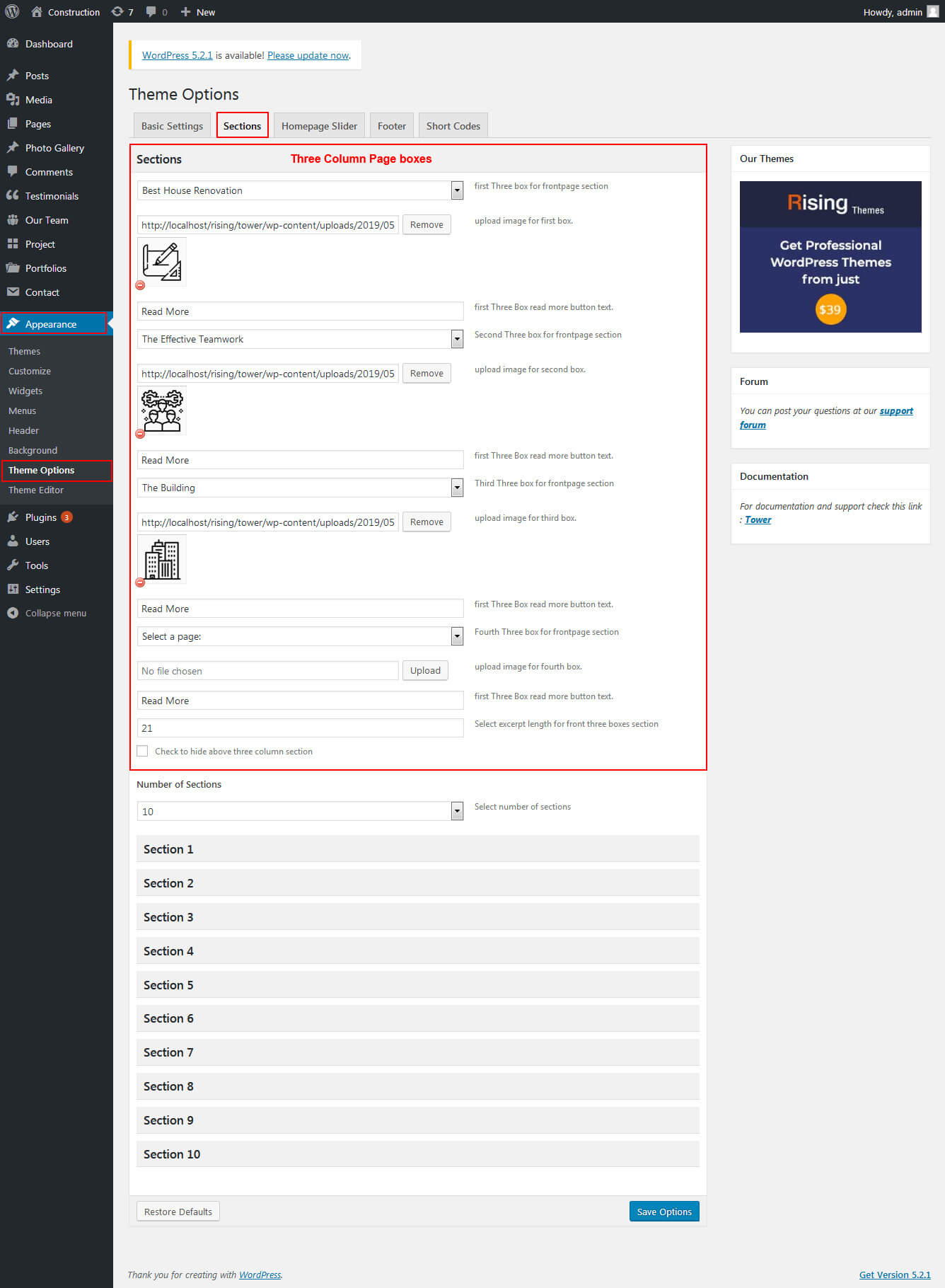 To manage this section go to Appearance » Theme Options » Sections » Three Column Page Boxes