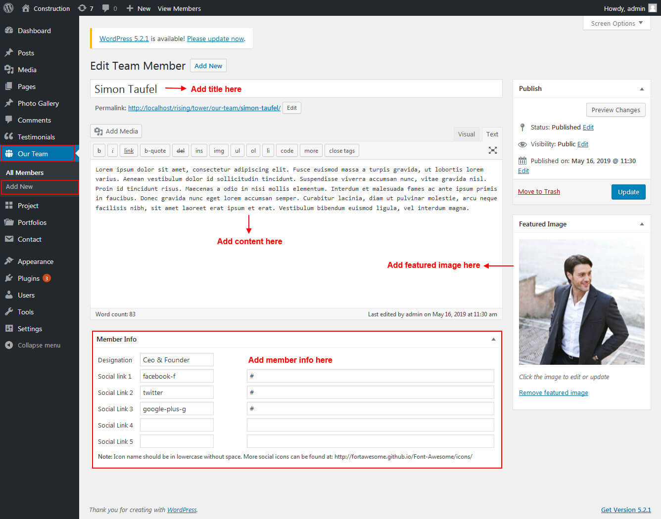 This section is used to display Team members list in your website