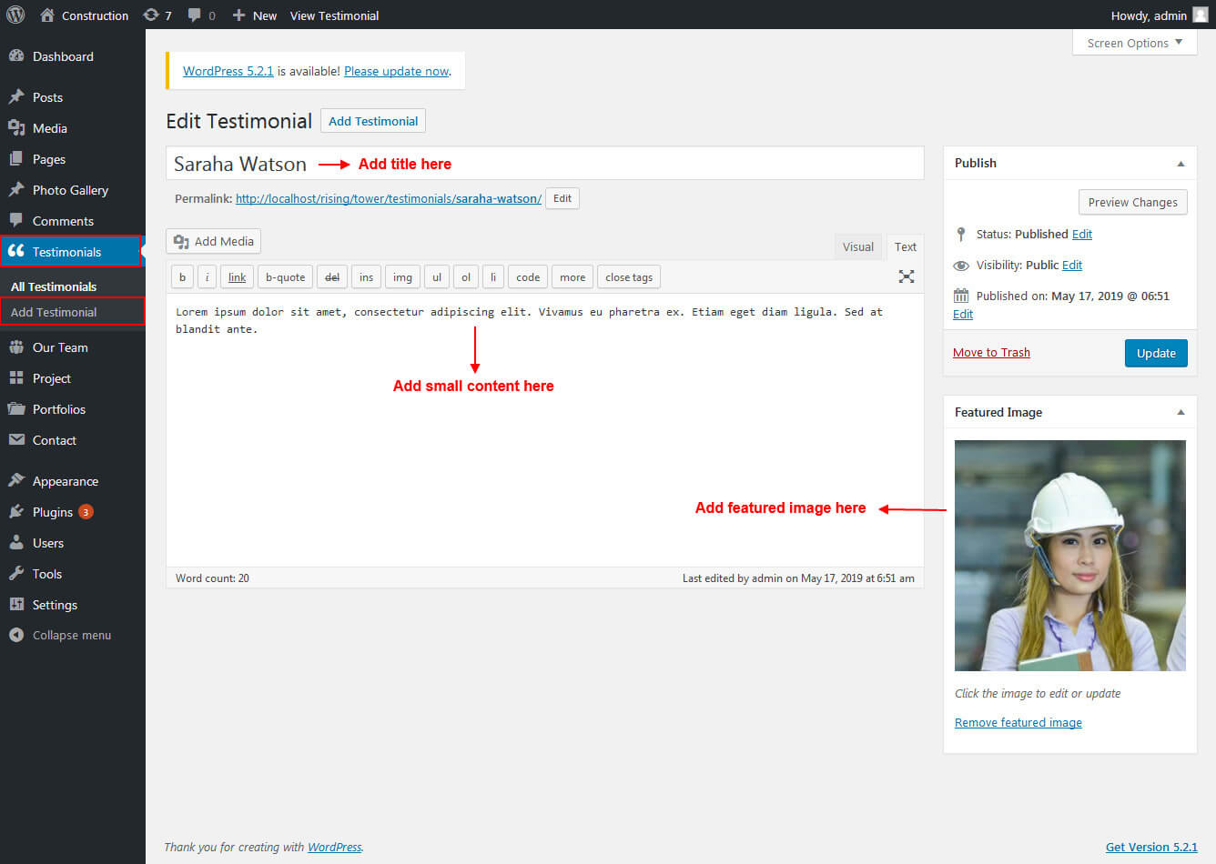 This section is used to display clients testimonials in your website