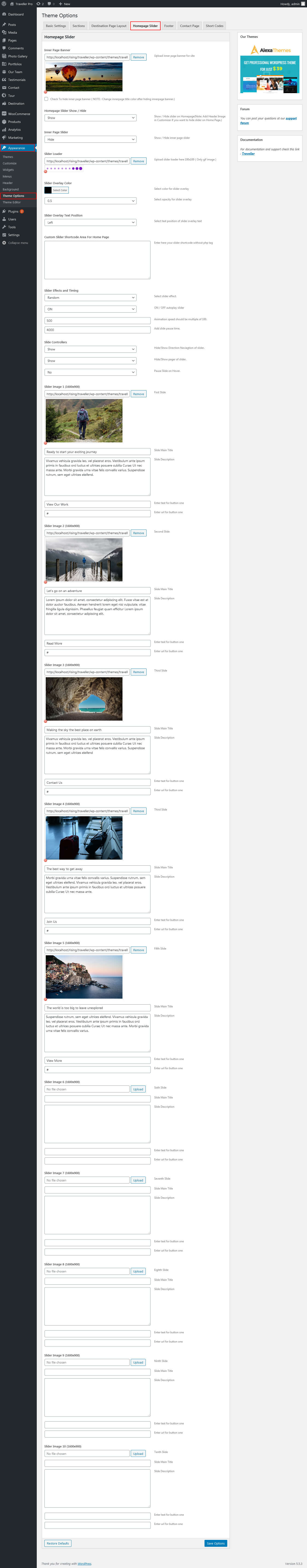 In order to add slides to homepage slider go to the Appearance » Theme Options » Homepage Slider