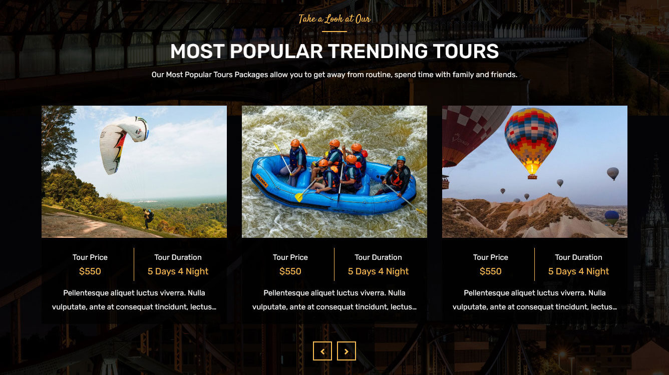 This section is used to display Most Popular Trending Tour in your website