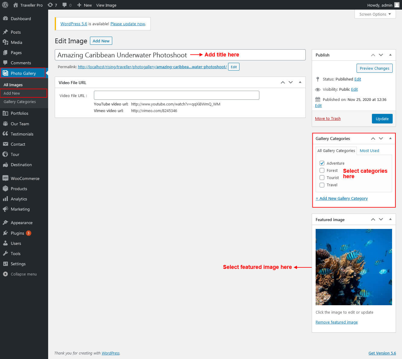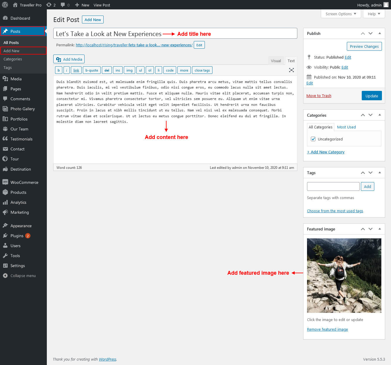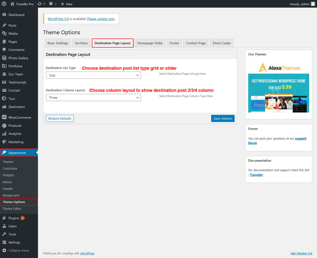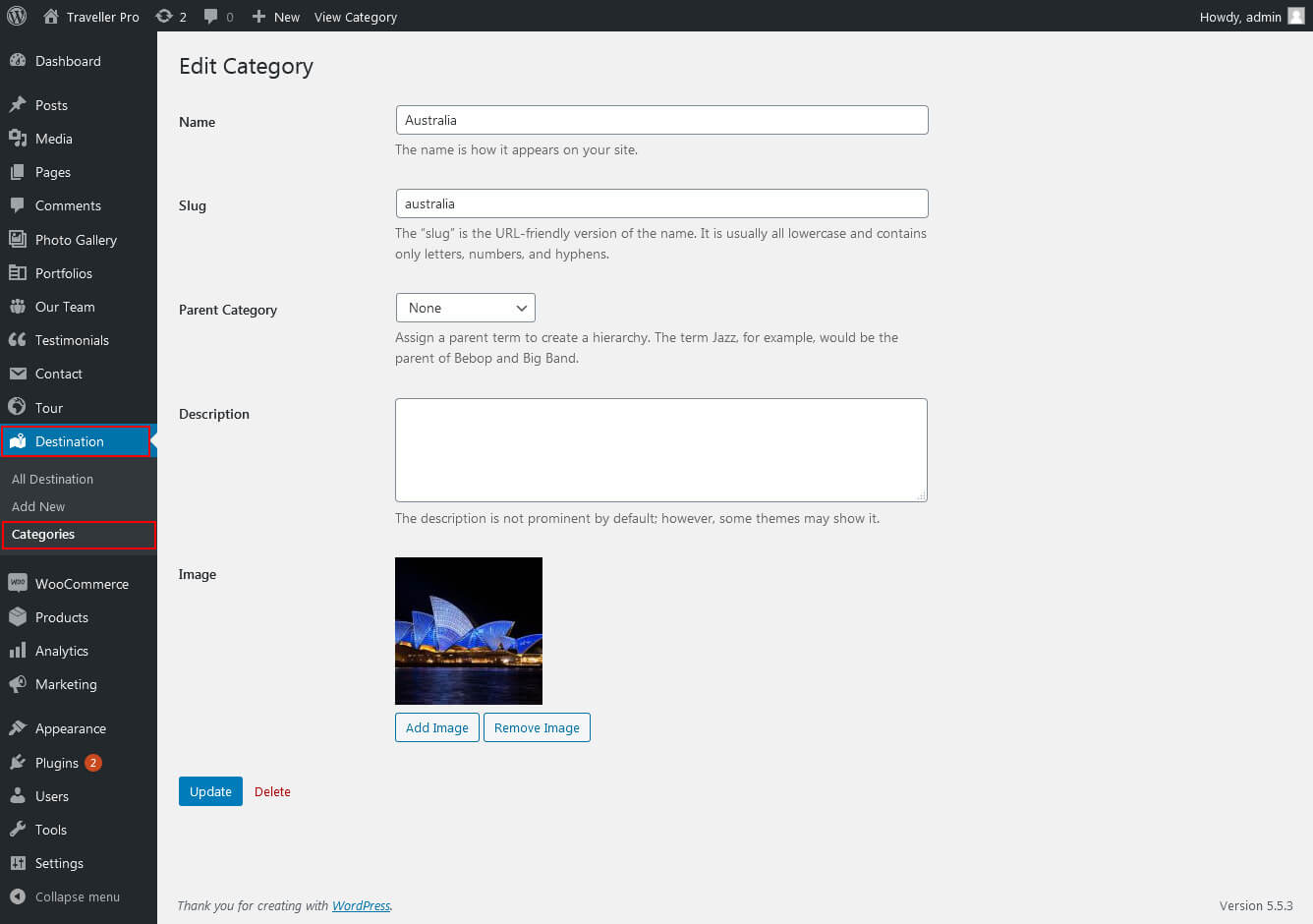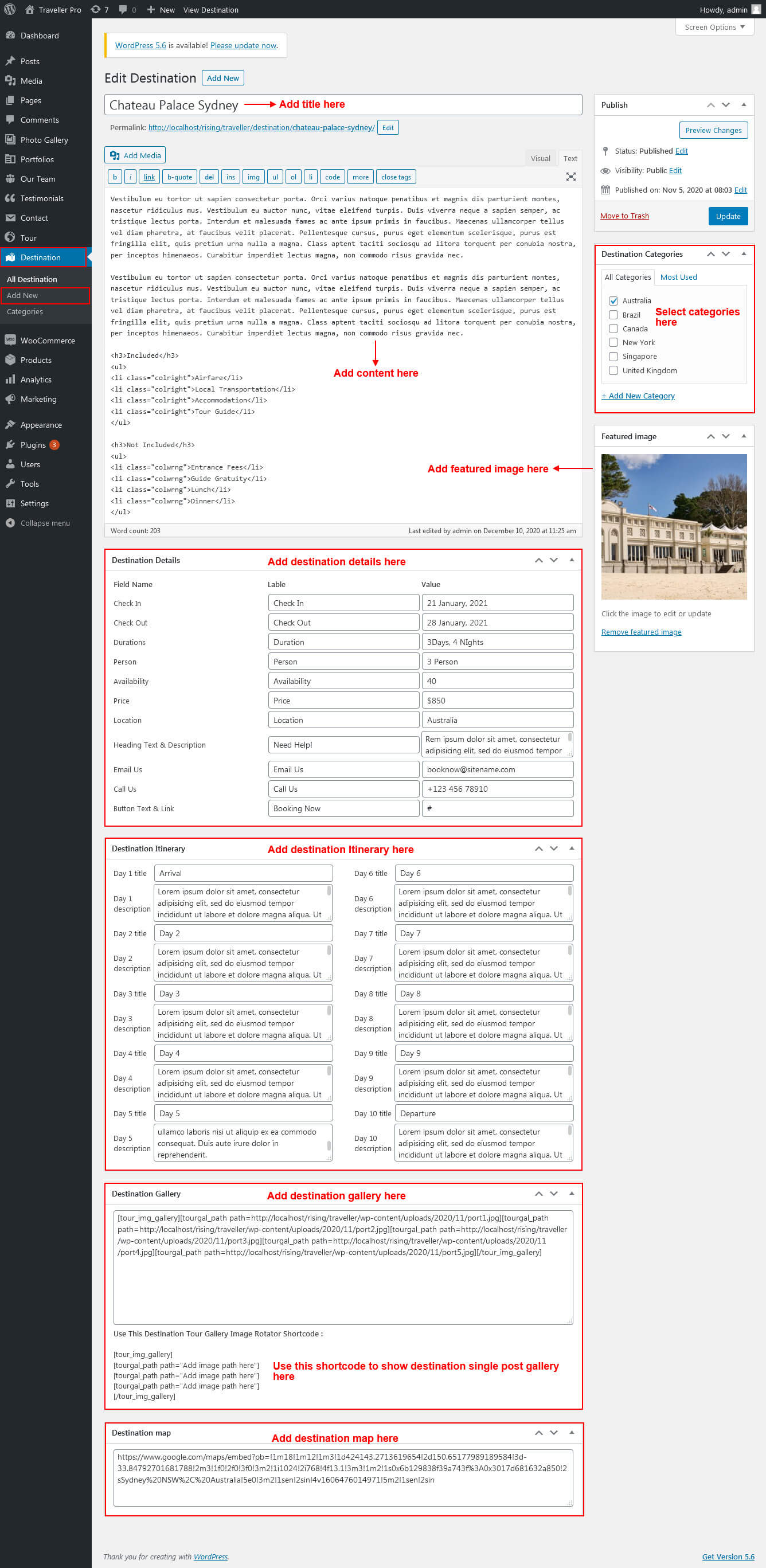 This section is used to display Destination categories post