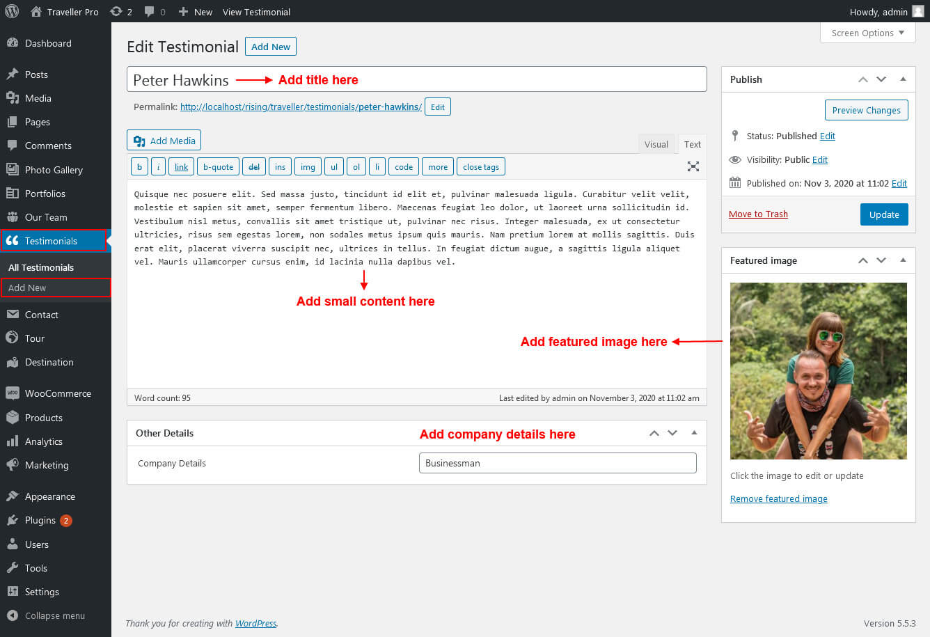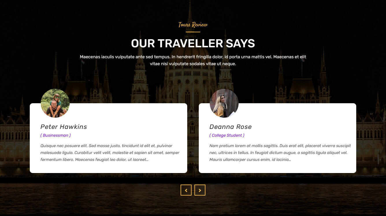 This section is used to display testimonials in your website