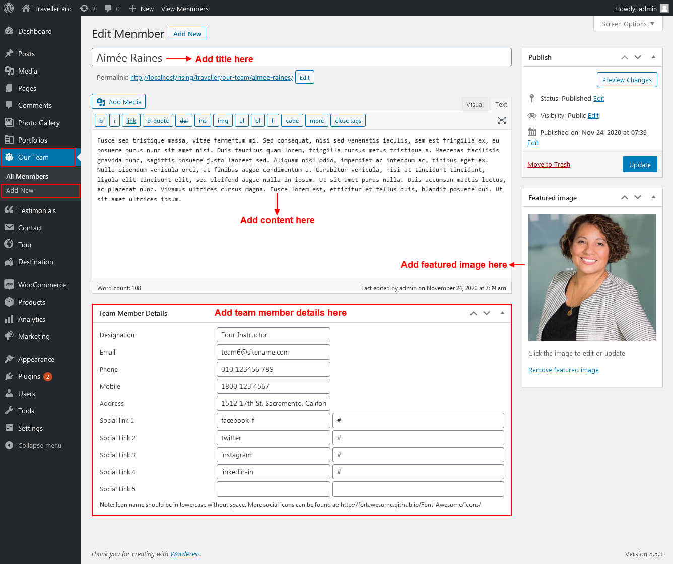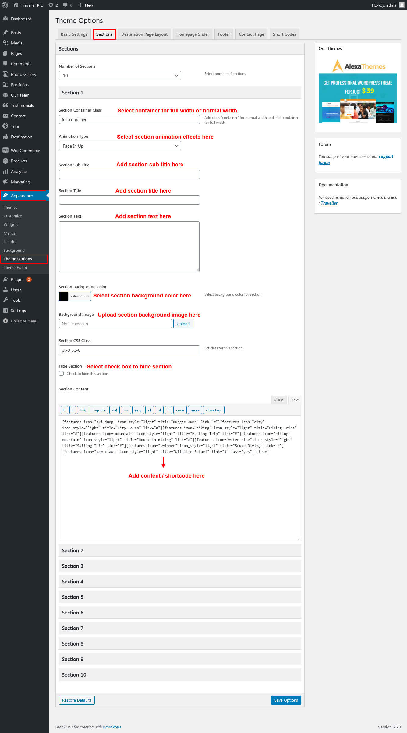 This section is used to display Traveller Instructor in your website