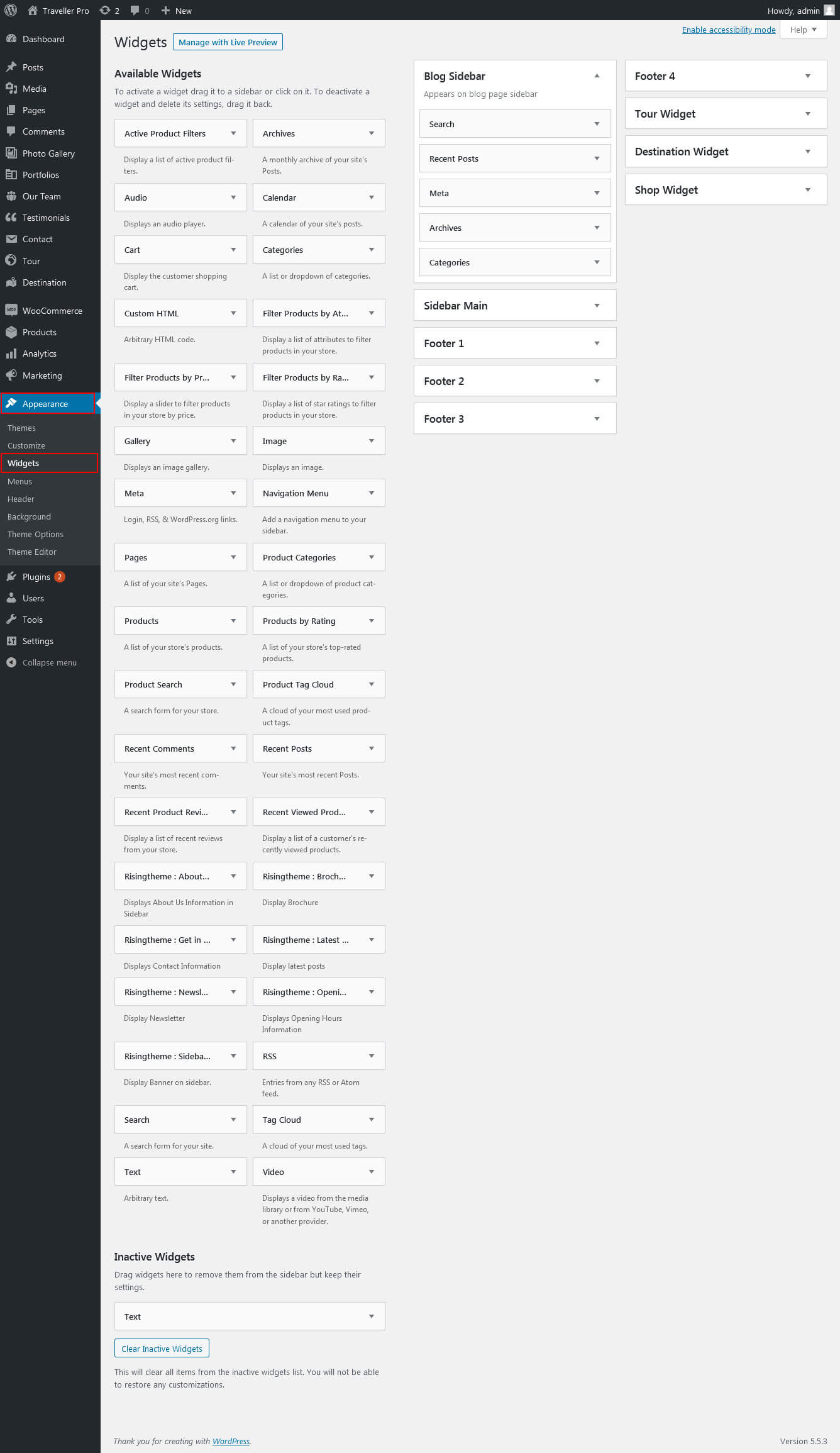 The WordPress widgets are used to manage sidebars: