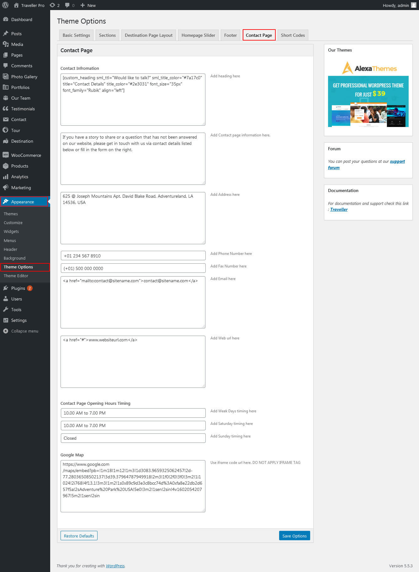 To view contact page shortcode go to Appearance » Theme Options » Contact Page: