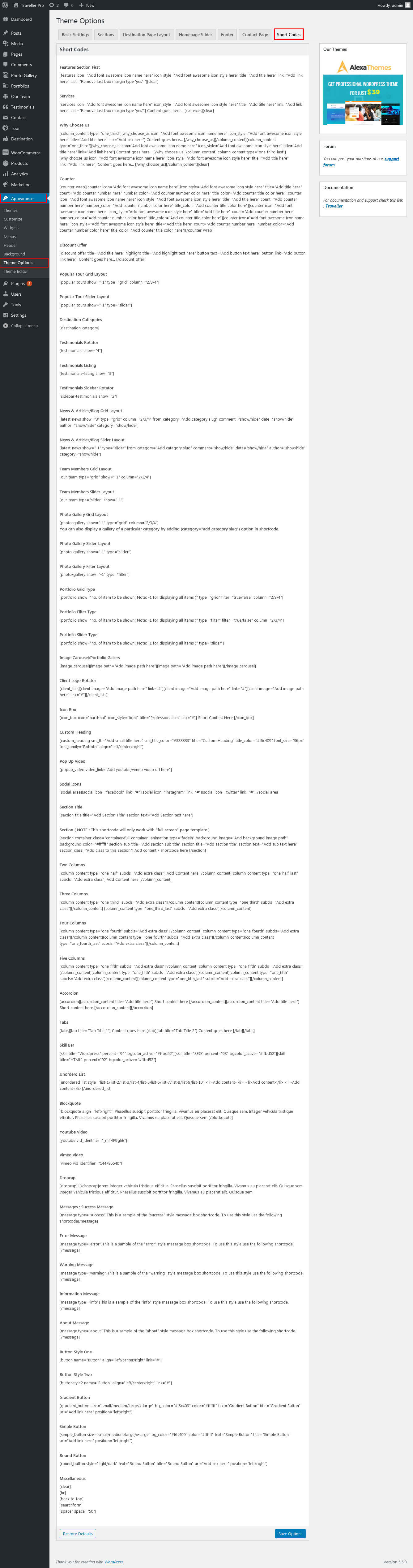 To view all shortcodes go to Appearance » Theme Options » Short Codes: